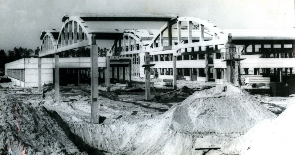 В 1976 году началось возведение предприятия, которое было объявлено областной комсомольско-молодежной стройкой. Фактически завод поднимали всей страной. Строительные материалы, металлоконструкции, техническое оборудование шло сюда из разных мест Советского Союза – Прибалтики, Украины, Казахстана. Огнеупорные материалы из Чехословакии. Со всех уголков страны приглашались специалисты, на родственных предприятиях готовились рабочие кадры. Возведение ДФЗ называли «стройкой дружбы».